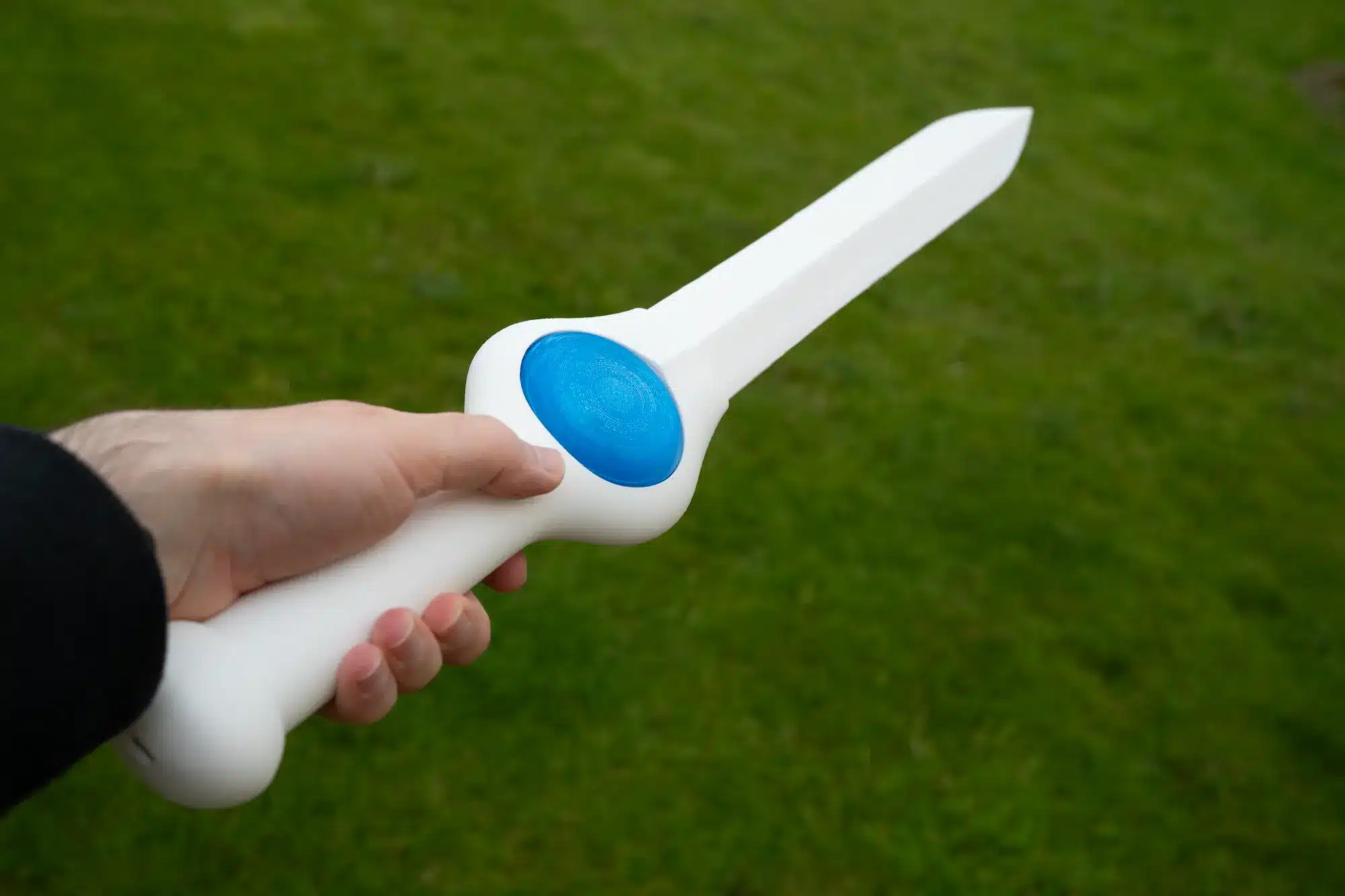 To ensure convenience and longevity, a rechargeable lithium-ion battery was integrated into the grip. The battery setup included a USB-C charging port, discreetly hidden in the pommel, providing an unobtrusive and practical solution for recharging.
